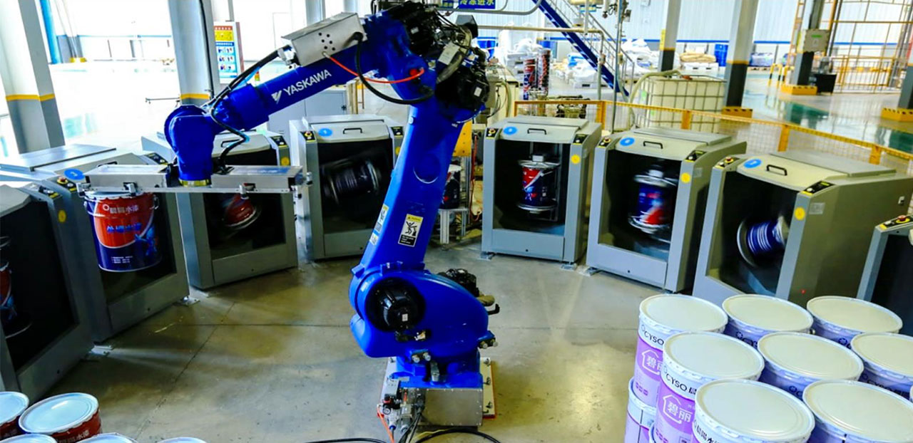 晨陽水漆(qī)擁有多條(tiáo)全自(zì)動(dòng)生產線,通過機(jī)器人、生產(chǎn)線、信息係(xì)統的集成應用,實現產品在生產(chǎn)、倉儲、物流全過程的自動化、智能化和一體化。