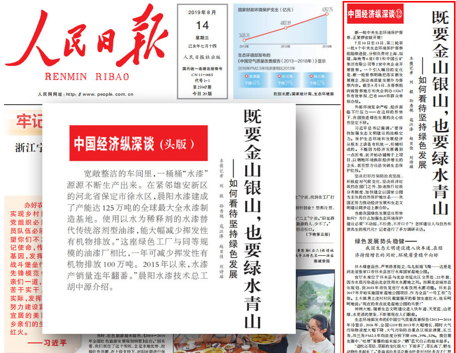 人民日報2019年8月14日署名文章:“中國經濟縱深談”係列述評之十二:既要金山銀山,也要綠水青山