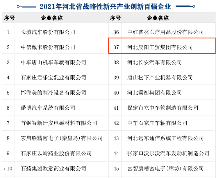 2021年河北省戰(zhàn)略性新型(xíng)產業創(chuàng)新百強企業從領域(yù)分布情況(kuàng)看,包括新一代(dài)信(xìn)息技(jì)術、高端裝備製造、生物醫藥健康、新材料、新能源與智能電網裝備、新能源汽車、節能環保等戰略性新(xīn)興產業重(chóng)點領(lǐng)域。